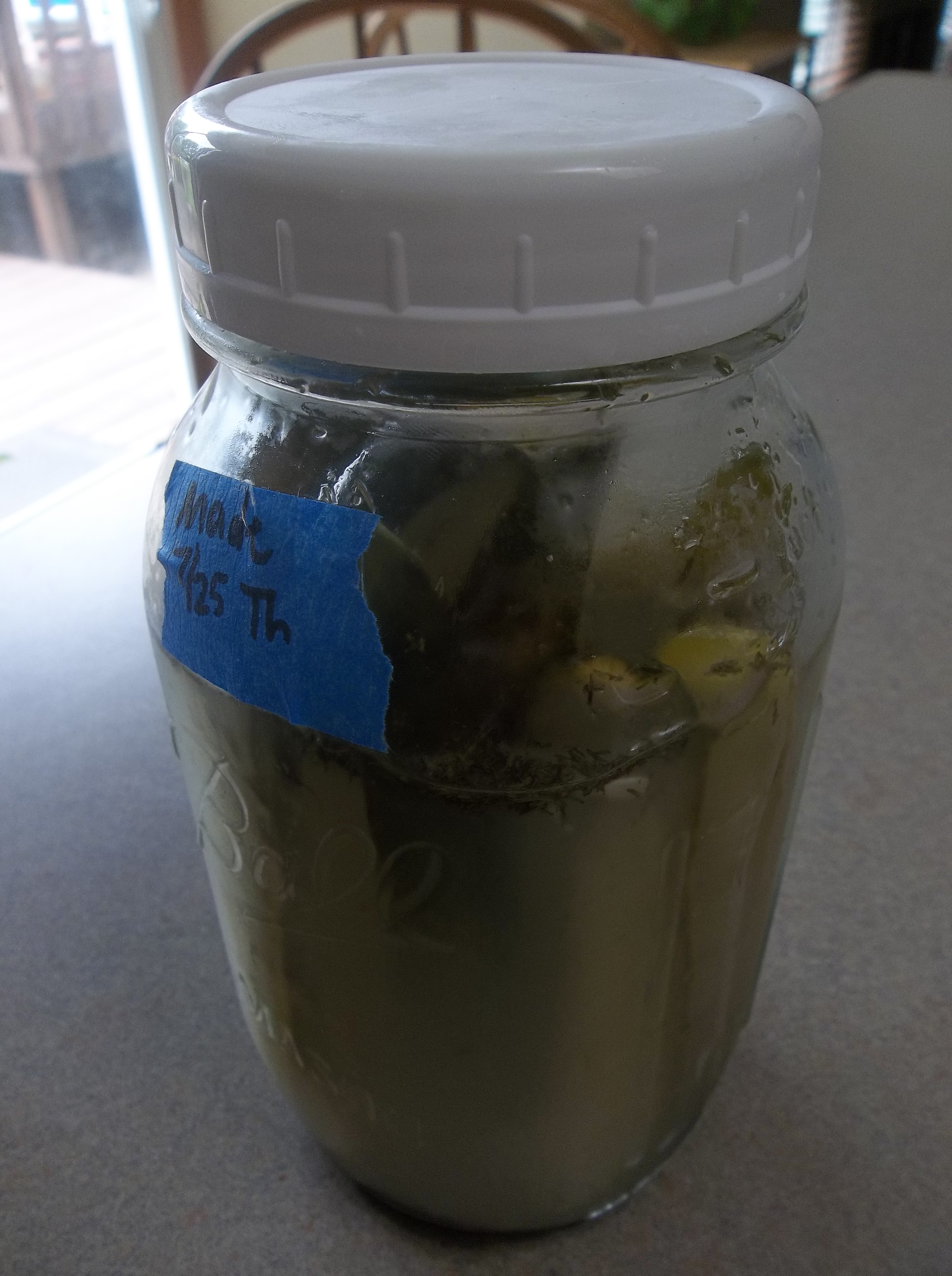That’s it! No hot water processing mess in your kitchen, and you have a delicious pickle that is full of good bacteria.