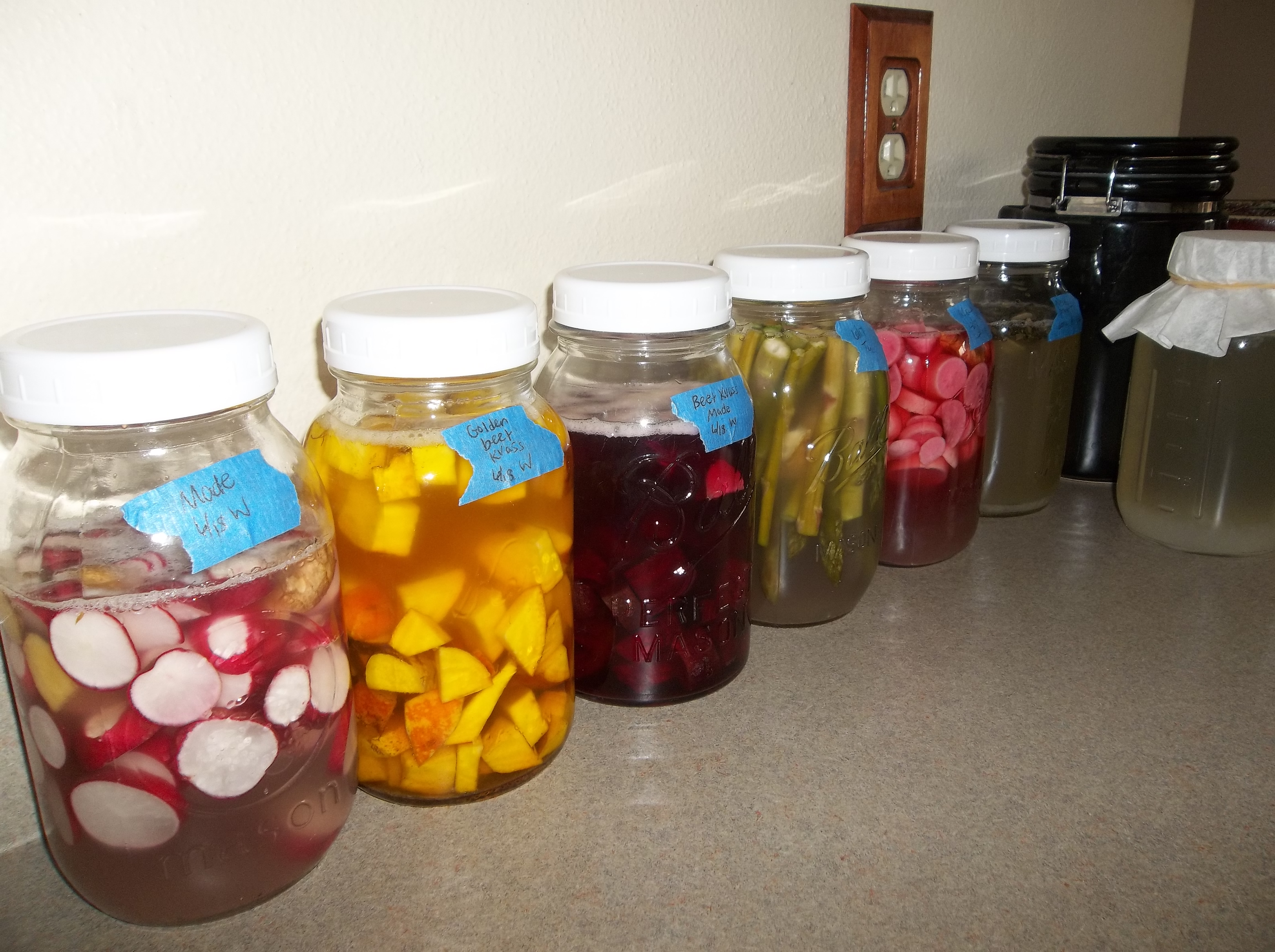 You can take any vegetable and ferment it.  It’s simpler than canning or pickling, and it’s healthier for you.  You can experiment by adding different ingredients and seeing what flavor combinations you can make.  For example, I had some cucumbers earlier this year that I wanted to make into pickles (fermented cucumbers).  So I sliced some up, stuck them in a Mason jar with some water, salt, dill and garlic, and we had some really delicious pickles.