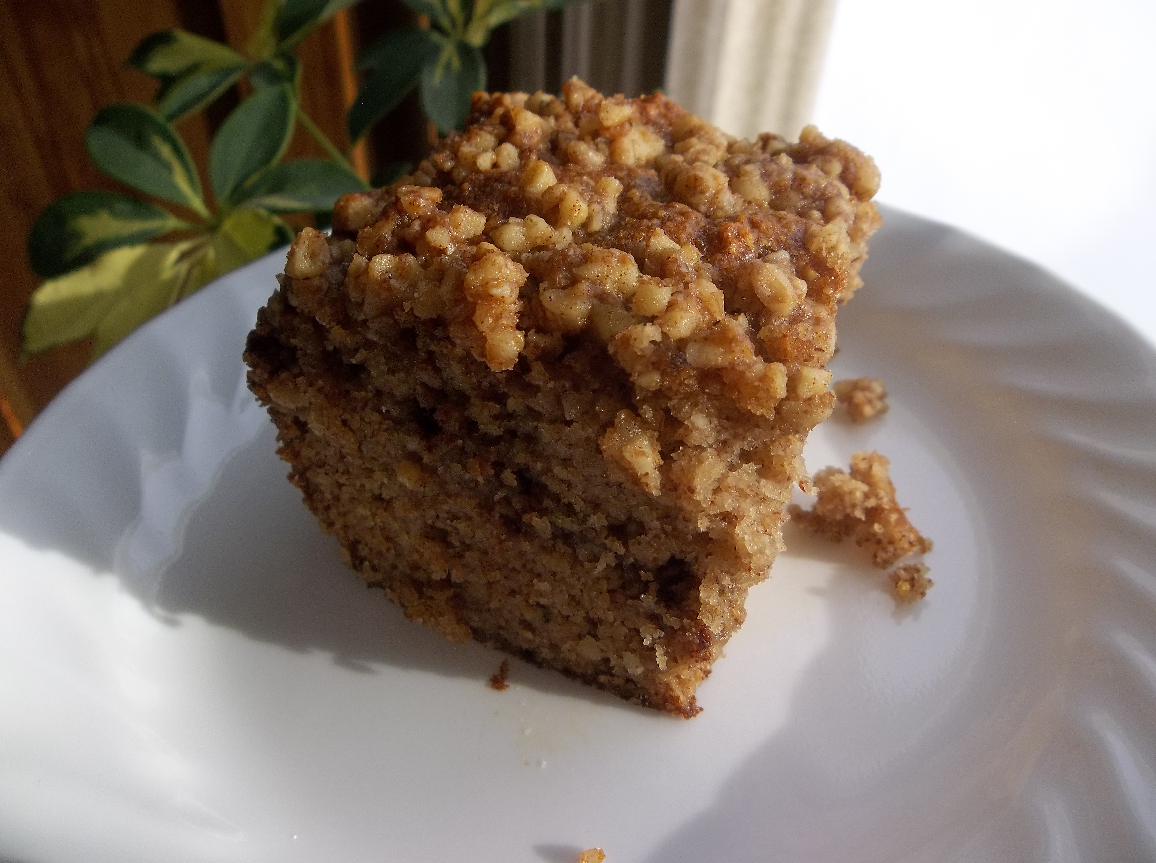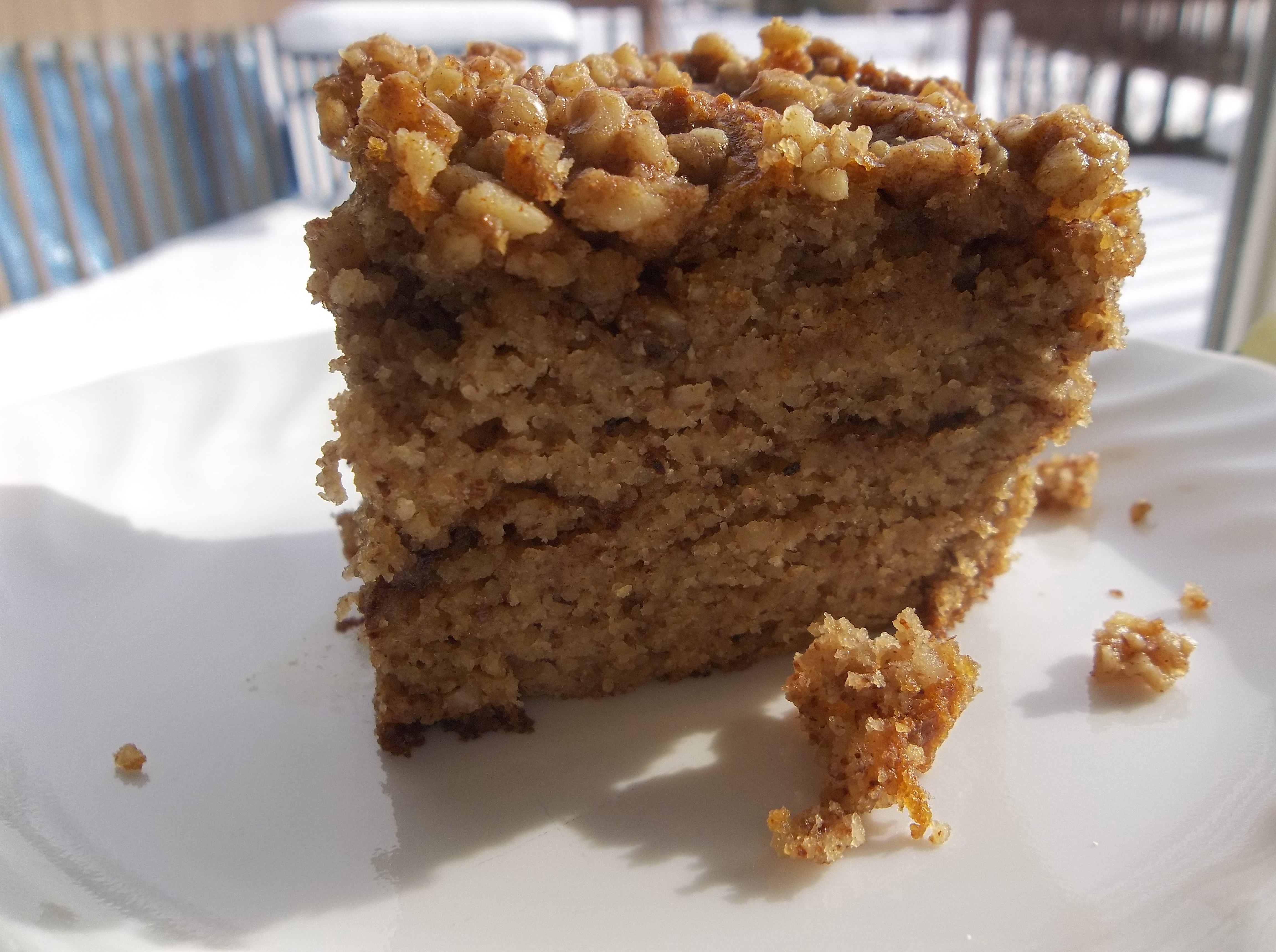 The other day I made my first recipe from her book, the Cinnamon Crumb Coffee Cake on page. 118. De-licious! What’s more, my husband came home and had a piece (and he’s a huge grain-eater, a.k.a. “not GAPS”) and he commented, “Wow! You can’t even tell there’s nuts in this flour! Well, I mean, except for the nuts on top.” 😉 It really does have a lovely texture and a comforting taste.