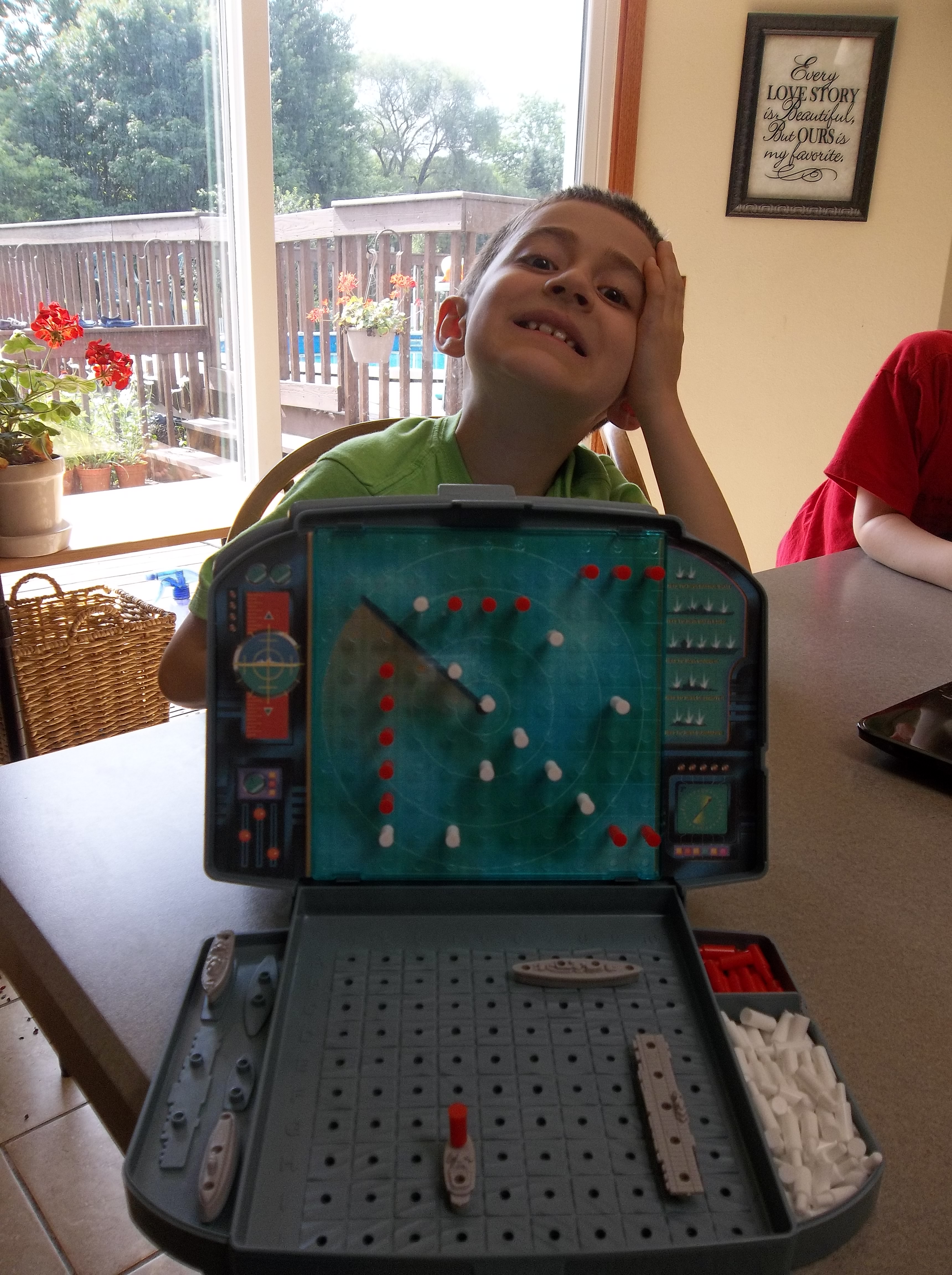 For kids who don’t like to lose, the game helps to gently ease them into the fact they may lose, which gives time for parents to prepare them for the end of the game. Usually the game is close or I lose (not for lack of trying 😉 ), but for some reason today every guess I made was a “hit”, so I quickly raced ahead. I ended up trying to slow down a little and finished up winning just one ship ahead. My son does much better with losing than he used to, but I still try not to completely demolish him when we play a game. He ended up losing, gave me a handshake and a “good game, Mom!” and went about the rest of his morning happy.