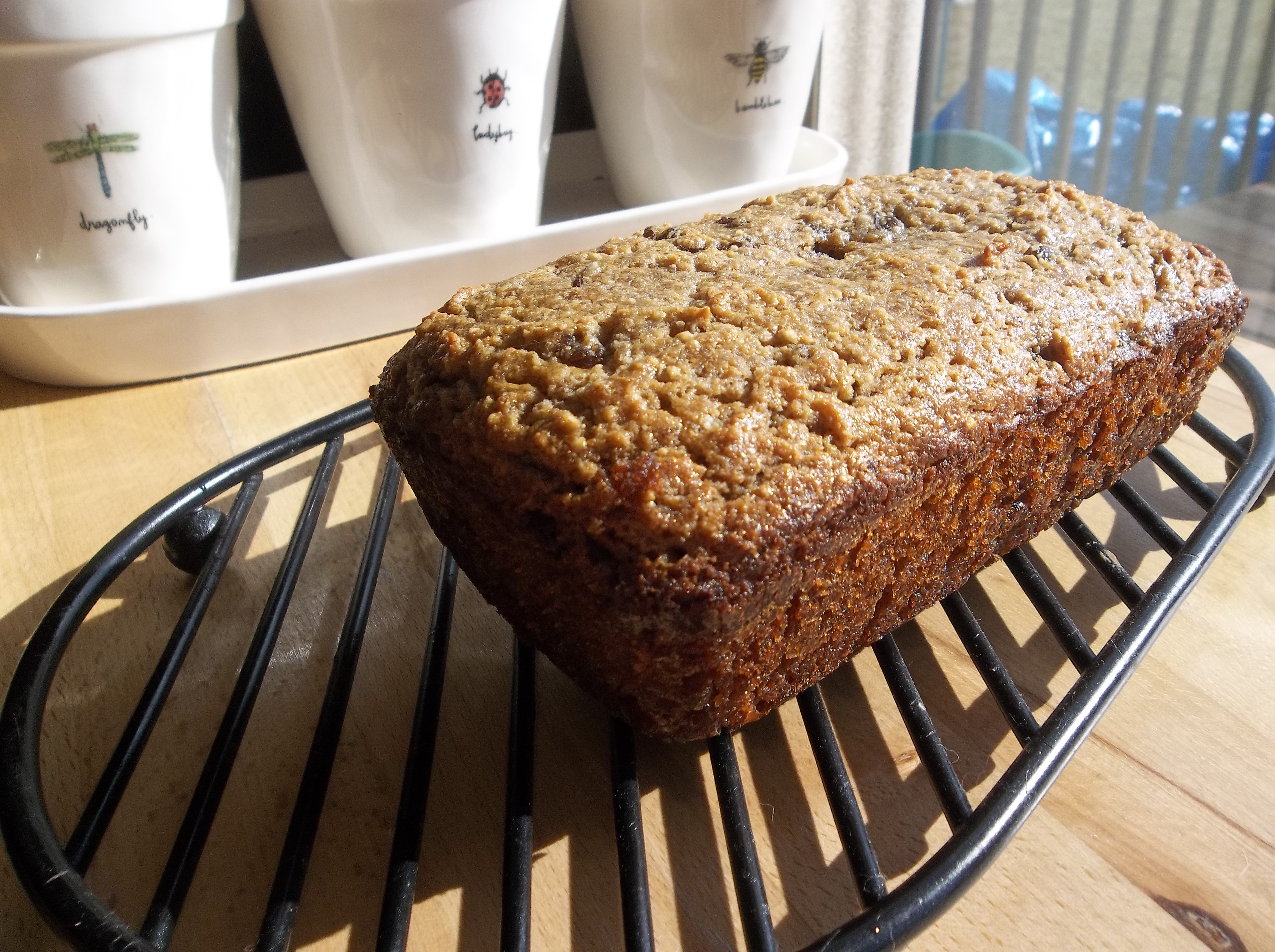 Pour into a small greased loaf pan and bake at 325 degrees Fahrenheit for 25-35 minutes (I tend to bake it around 35-40 minutes, but make sure to check sooner so that bread does not overbrown).
